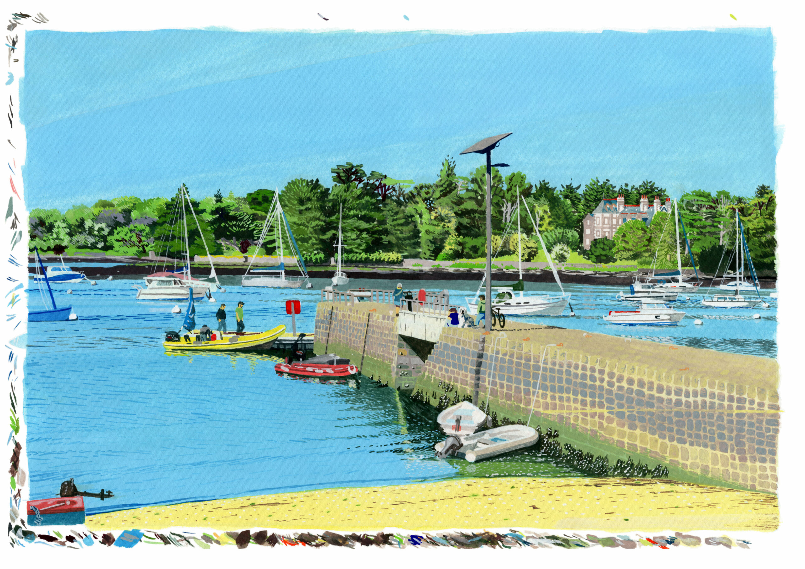Impression numérique d’après une gouache originale sur papier 180 g/m². Peinture inspirée du port de l’Île Tudy dans le Finistère.